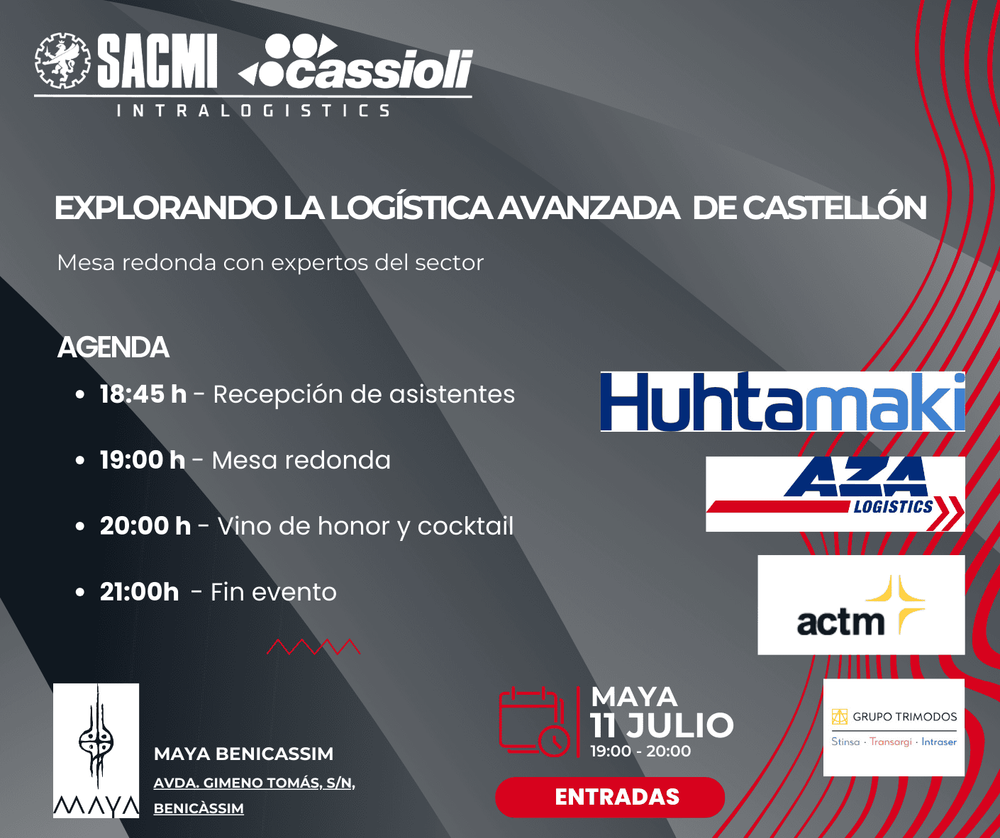 SACMI Ibérica, en colaboración con AZA Logistics, tiene el placer de anunciar la celebración de la mesa redonda » Explorando la logística avanzada de Castellón». Este evento, programado para el 11 de julio en el Restaurante Maya en Benicàssim, reunirá a líderes industriales de diversas áreas para abordar algunos de los avances más significativos y disruptivos en logística e intralogística.
