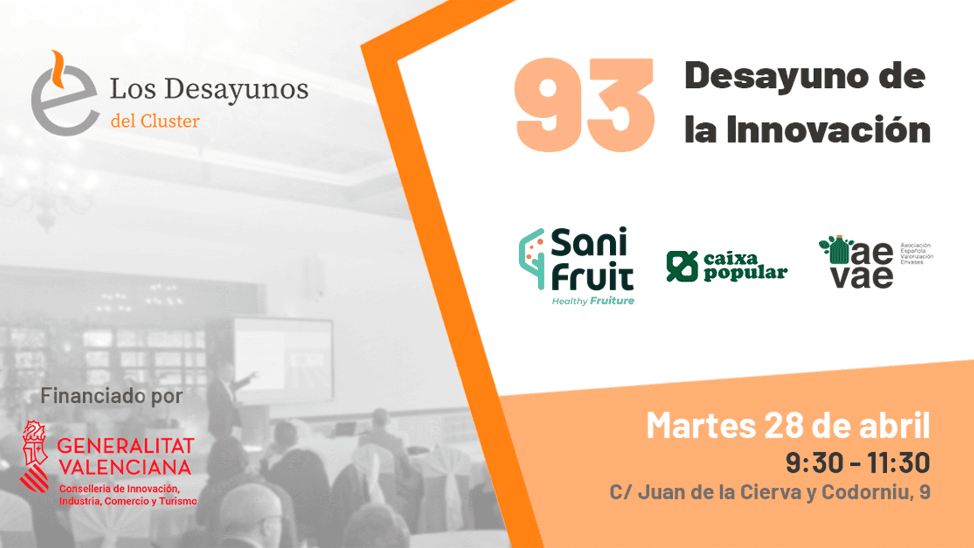 Este nuevo Desayuno del Cluster cuenta con la financiación de la Conselleria de Innovación, Industria, Comercio y Turismo de la Generalitat Valenciana.